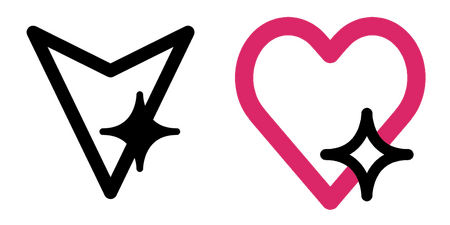 Alternative Endelic symbols: A simple downward-facing arrowhead with a small 4-pointed-star at the bottom right; it is uncoloured. The other is a pink-coloured heart with a white four-pointed star on the bottom right; the colours of the heart and star are not important and can be changed to any colour if that is desired.